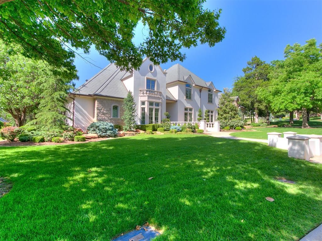 This impressive home is situated among mature trees and lush landscape on an expansive 2/3 acre lot in Norman's finest gated community of Ashton Grove. A timeless European design with a refined transitional elegance offering an abundance of privacy with the backyard extending so that no other residence will be built directly behind this home. Updated to perfection this home offers quality and luxury in style! Hardwood floors flow throughout the downstairs. A private study features vaulted ceilings with exposed beams. A stunning living area boasts soaring ceilings and a wall of arched windows framing breathtaking views of the infinity pool and outdoor living. The spacious kitchen makes anyone want to cook with all Viking appliances including a 6 burner stove with a griddle and double ovens plus a warming oven. The primary suite is sophisticated yet offers a tranquil ambiance with elegant arched windows, a cozy fireplace and French doors that open to a covered patio with spectacular views of the backyard. A second beautiful ensuite is also located downstairs for convenience. The upstairs features 3 additional bedrooms with bathroom access and a huge recreation room! 2 bedrooms share a bathroom with double vanities and private shower. The third bedroom upstairs is a huge room with its own private bathroom. The recreation room offers lots of space for recreation or hobbies! And a sound system offers built-in speakers throughout the home. The outdoor amenities rival the indoor with an exquisite infinity pool and spa, a cabana offering serene outdoor living with a fireplace, grill and TV. The extended backyard offers mature trees and privacy. The gated courtyard allows plenty of space for outdoor fun! The garages easily fit 4 cars with extra space left over plus there is a large in-ground storm shelter. A Davinci roof tops it all off!